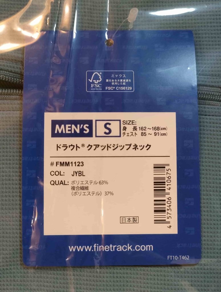 • 重量はジップネックのロングスリーブで約140gとかなり軽量 (半袖T:100g 長袖T:125g)